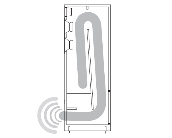 正面看起來變纖細了,但是側面箱體頗深,實際量測了一下才知道有 38 cm之多,做淺一點不行嗎?不行!這是原廠的設計用心,因為里面搭載了新一代ATL(Advanced Transmission Line)「先進傳輸線式」設計,必須要有足夠的箱體容積才能在內部規劃出傳輸線的通道,增加低頻量感與延伸能力。傳輸線式的基本理論是用四分之一波長來計算,所以在設計喇叭之前先決定好想要達到的低頻頻率,然后再依據「速度=頻率x波長」公式求得波長數據,接著取波長的四分之一值,就是傳輸線導管的長度了。以Fact.8來說,原廠提供的低頻數據為28Hz,所以箱體內部的傳輸線長度就是3 公尺左右。