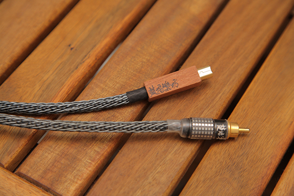 這是這次試聽所用的訊號線,由楚培親自設計制作的「荊璞」。外層絕緣部分用的是宣紙,沒錯,就是寫書法用的宣紙。